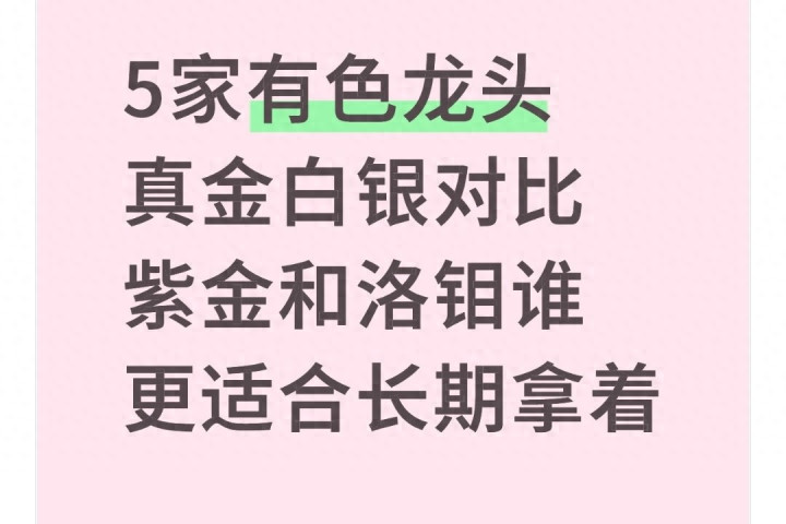 2026年开年有色板块热度一直居高不下,新能源电池、特高压电网建设、AI算力机房这些核心领域,对铜、锂、钴等有色资源的需求持续攀升,再加上全球优质矿产资源保供的重要性不断提升,紫金矿业、洛阳钼业、中国铝业、江西铜业、云南铜业这5家行业龙头,成了不少人计划长线布局的重点标的。大家纠结最多的核心问题就是紫金矿业和洛阳钼业该选谁,一个是铜金锂多资源全覆盖的巨头,一个是钴钨钼稀缺资源领域的王者,剩下三家也各有不可替代的核心优势,到底谁能扛住行业周期波动,长期给投资者带来稳定收益,成了当下大家最拿不准的事。普通人做长线投资,最忌讳选不对标的白白耗费时间还没收益华盈策略,其实选有色龙头不用盲目跟风听别人忽悠,抓准资源储备、业绩兑现能力和成长逻辑这三个核心点就行,把这几家的真实实力和潜力扒清楚,心里自然就有准谱了。