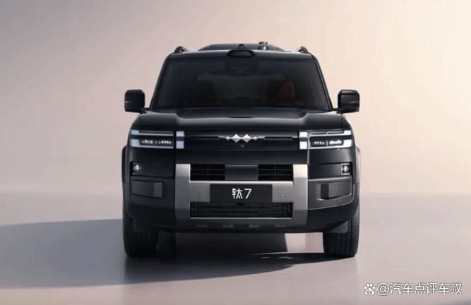 从车身设计与车身尺寸来看,两者的定位差异更为直观。方程豹钛7的长宽高达到4999/1995/1865mm,轴距为2920mm,是不折不扣的中大型SUV。其车身轮廓极为方正,线条笔直,搭配车顶行李架、固定式侧脚踏板以及外挂式备胎,气场强大,210mm的最小离地间隙则确保了良好的通过性基础。